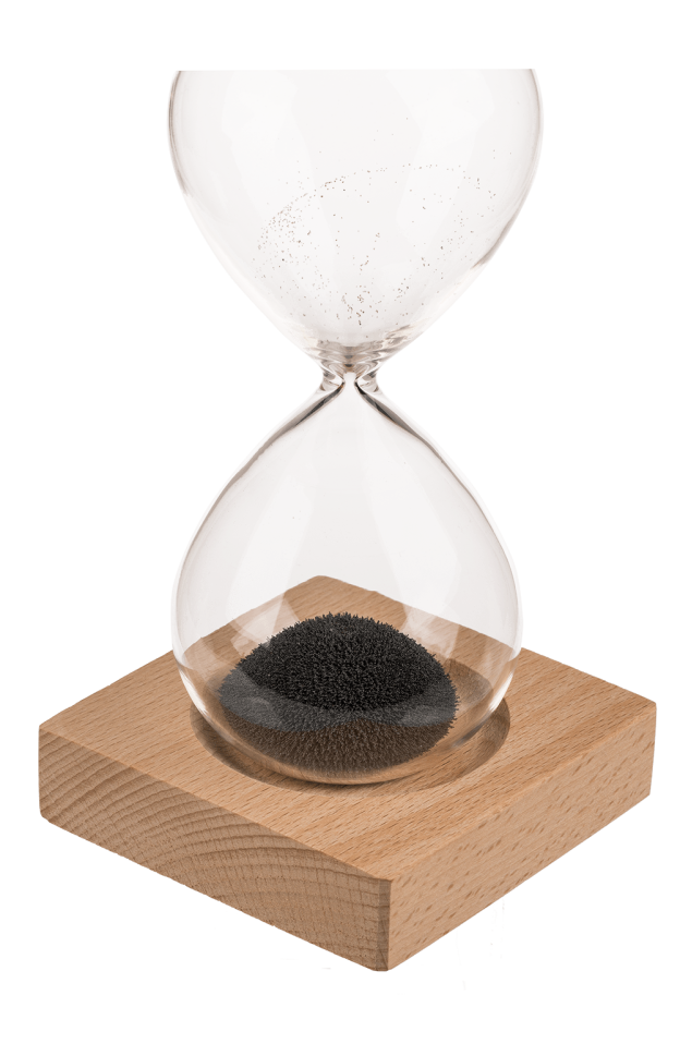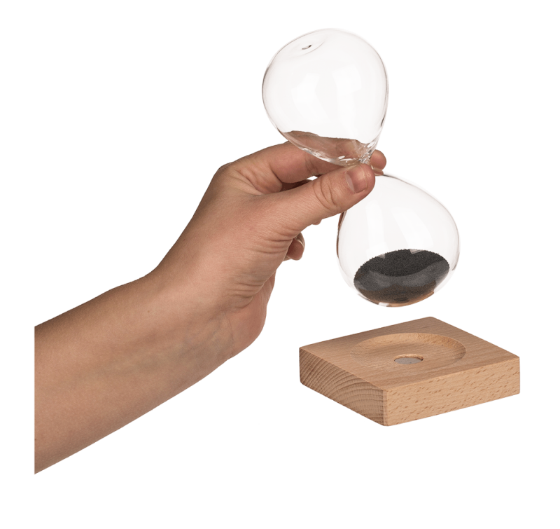 Представяме ви нашия Магнитен пясъчен часовник, грациозно съчетание на естетика и функционалност, което ви насърчава да изживеете времето по един напълно очарователен начин. Този забележителен пясъчен часовник надхвърля обикновената функционалност, превръщайки се в завладяващо произведение на изкуството, което внася елемент на елегантност и спокойствие във вашето обкръжение. С всяко леко завъртане финият пясък се спуска през прозрачната стъклена камера, създавайки сложен танц, който е едновременно хипнотизиращ и успокояващ.