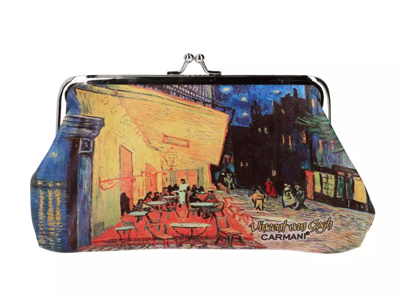Представяме ви нашето портмоне, вдъхновено от Ван Гог, шедьовър на изкуството и функционалността, което добавя малко артистично усещане към ежедневните ви приключения. Екстериорът показва „Кафене“ от Винсент Ван Гог, картина, известна със своята топла атмосфера и интригуваща символика. Този портфейл е предназначен за тези, които ценят стила и практичността.