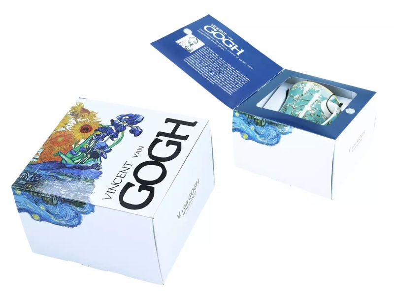 Но магията не спира дотук – внимателно подбран детайл от картината украсява вътрешността на чашата като тайна, споделена между вас и художника. И това не е всичко! Тази изящна чаша пристига в изящна кутия, прецизно проектирана да бъде сама по себе си произведение на изкуството. Отворете я и ще разкриете съкровищница от информация за художника, неговия живот и очарователните истории зад емблематичните му творби. Това е покана да се потопите дълбоко в света на Ван Гог, да разберете неговата страст и да се насладите на дълбочината на неговото творчество.