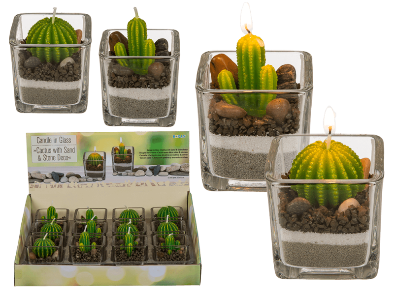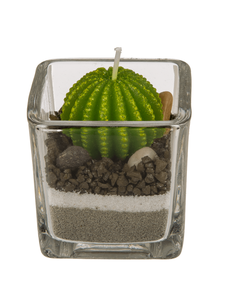 Пренесете красотата на пустинята в дома си с нашата свещ Кактус – очарователен декор, който служи като източник на светлина и начало на разговор. Сгушена в стъклен съд, тази свещ идеално имитира малък кактус, допълнен със сложни детайли и камъчета около основата. Изберете от два варианта: кръгъл или изправен, като всеки предлага свой собствен уникален чар.