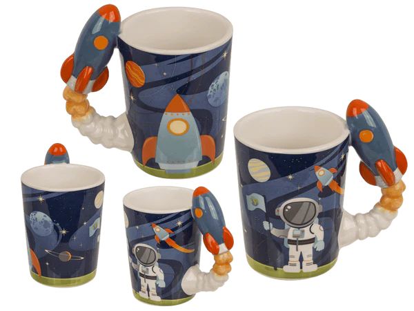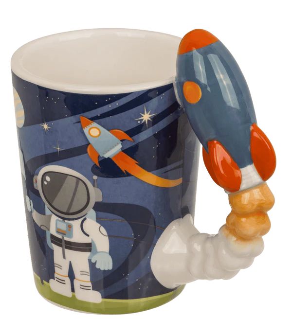 Потопи се в безкрая на космоса с тази уникална чаша с впечатляващ дизайн. Върху нея е изобразен космонавт, заобиколен от цветни планети, които създават усещане за приключение и откривателски дух. Истинският акцент е дръжката във формата на ракета – оригинален детайл, който прави чашата не просто практична, а и истинско визуално изживяване.Идеална за сутрешното кафе, чай или горещ шоколад, тази чаша е чудесен избор както за подарък, така и за лично вдъхновение. Подходяща за деца и възрастни, които обичат звездите, науката и всичко извън земната орбита.