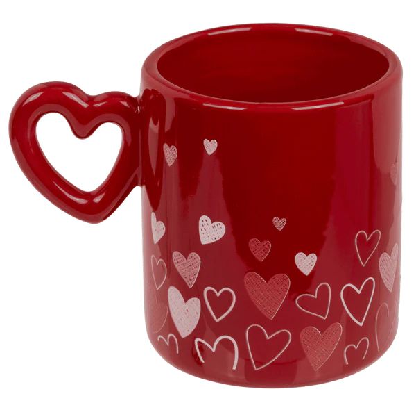 Романтичен подаръчен сет с порцеланова чаша с дръжка във форма на сърце и ключодържател сърце – нежен и стилен жест за любим човек. Вместимост - 380 мл.