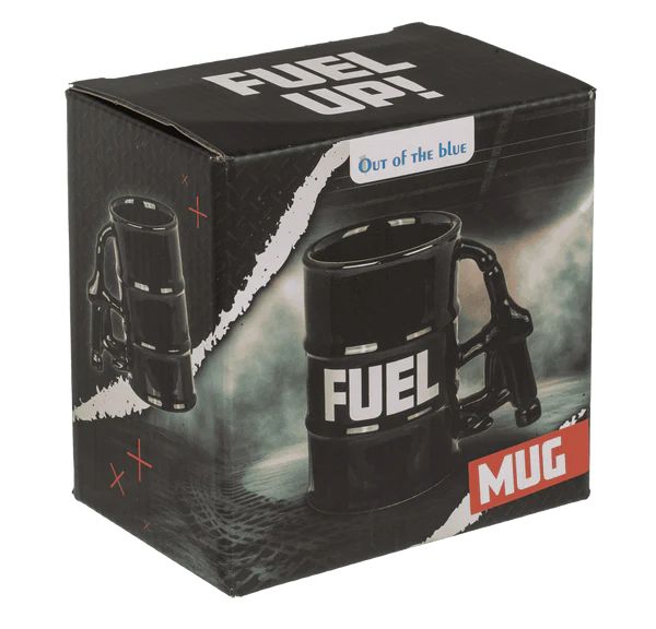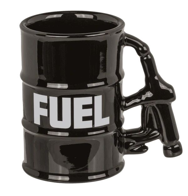 Запали деня си с чаша, която е на пълни обороти! Тази впечатляваща порцеланова чаша е създадена във формата на метален варел, а дръжката ѝ е като истински пистолет за зареждане на бензин – детайл, който придава автентичен и индустриален характер.